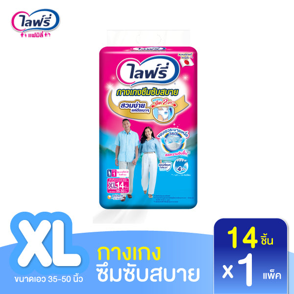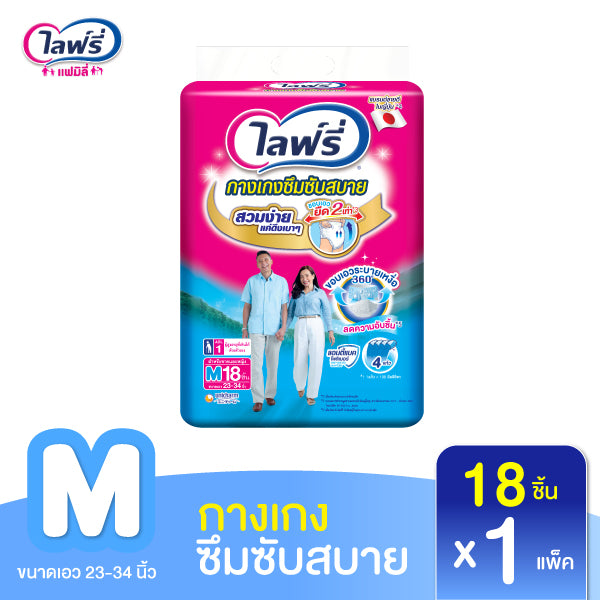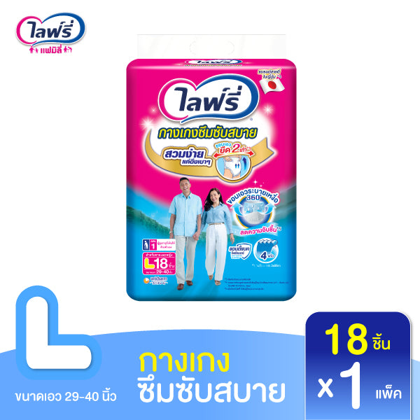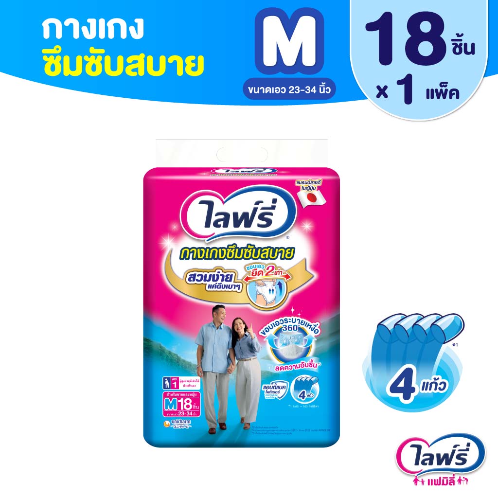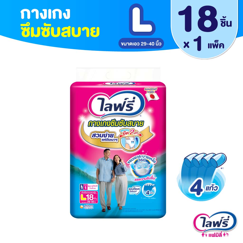 [เลือกไซส์เลย] ไลฟ์รี่ ผ้าอ้อมผู้ใหญ่ กางเกงซึมซับสบาย ไซส์ M 18 ชิ้น / L 18 ชิ้น / XL 14 ชิ้น จำนวน 1 แพ็ค