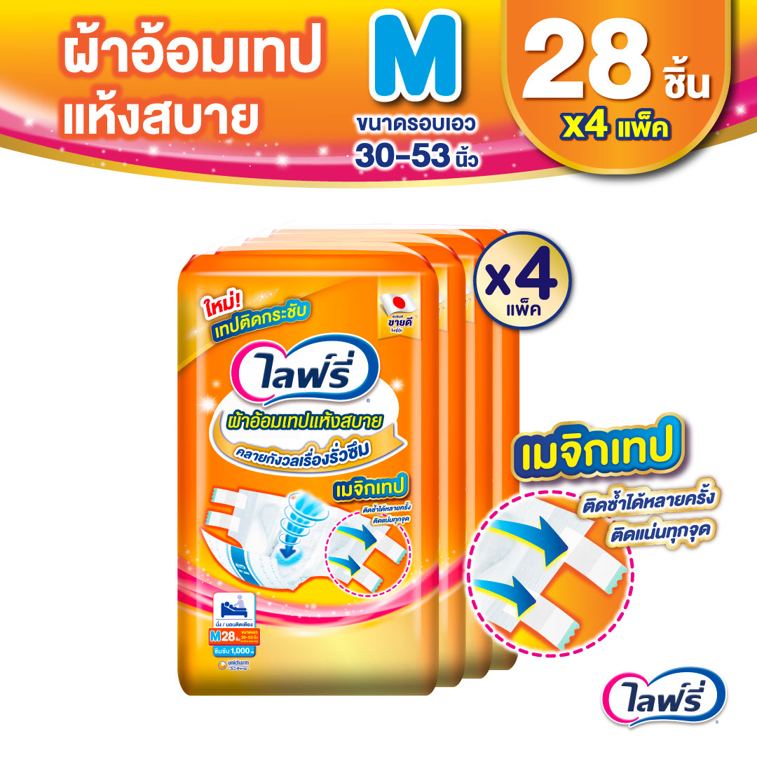ไลฟ์รี่ ผ้าอ้อมแบบเทปแห้งสบาย ไซส์ M (28 ชิ้น) จำนวน 1 แพ็ค
