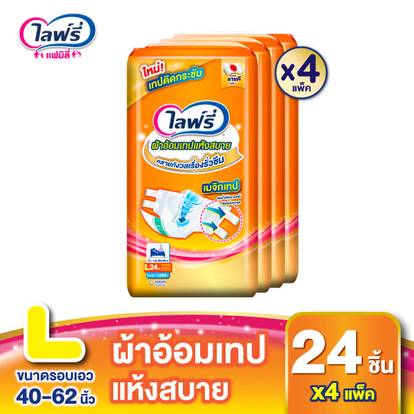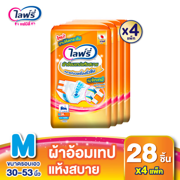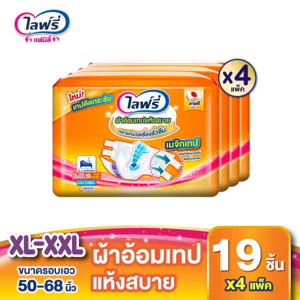 [เลือกไซส์เลย] ไลฟ์รี่ ผ้าอ้อมผู้ใหญ่แบบเทป แห้งสบาย ไซส์ M 28 ชิ้น / L 24 ชิ้น / XL 19 ชิ้น จำนวน 4 แพ็ค